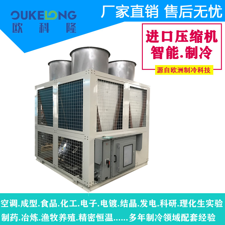 歐科隆Ex風(fēng)冷螺桿式防爆冷水機(jī)組是一款通過(guò)國(guó)家防爆認(rèn)證(Ex dⅡB T4 Gb)的專業(yè)工業(yè)制冷設(shè)備,整機(jī)防爆設(shè)計(jì)符合GB3836標(biāo)準(zhǔn),專為石油、化工、制藥等易燃易爆場(chǎng)所提供安全可靠的制冷解決方案。